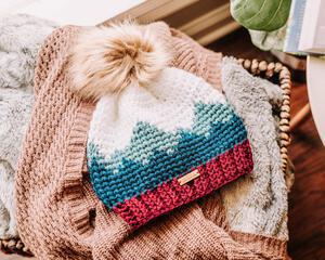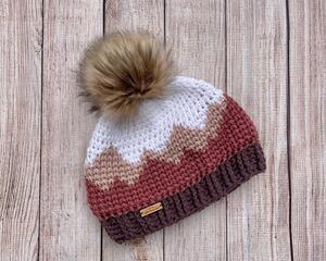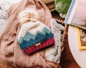 Mountain Range Winter Hat | Blue Mountains with Burgundy and ...