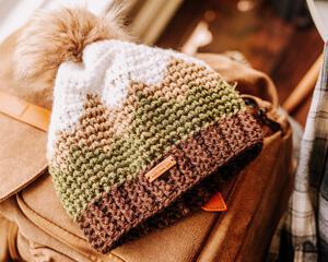 Mountain Range Winter Hat | Beige and Olive Green Mountains w...