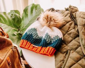 Mountain Range Winter Hat | Blue Mountains with Orange and Li...
