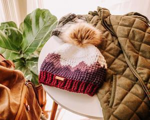 Mountain Range Winter Hat | Purple Mountains with Burgundy an...