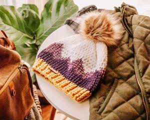 Mountain Range Winter Hat | Purple Mountains with Mustard Yel...