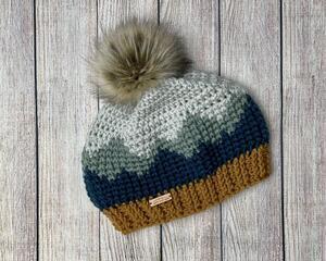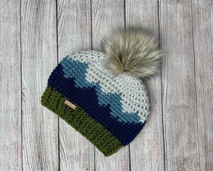 Mountain Range Winter Hat | Gray and Blue Mountains with Hone...